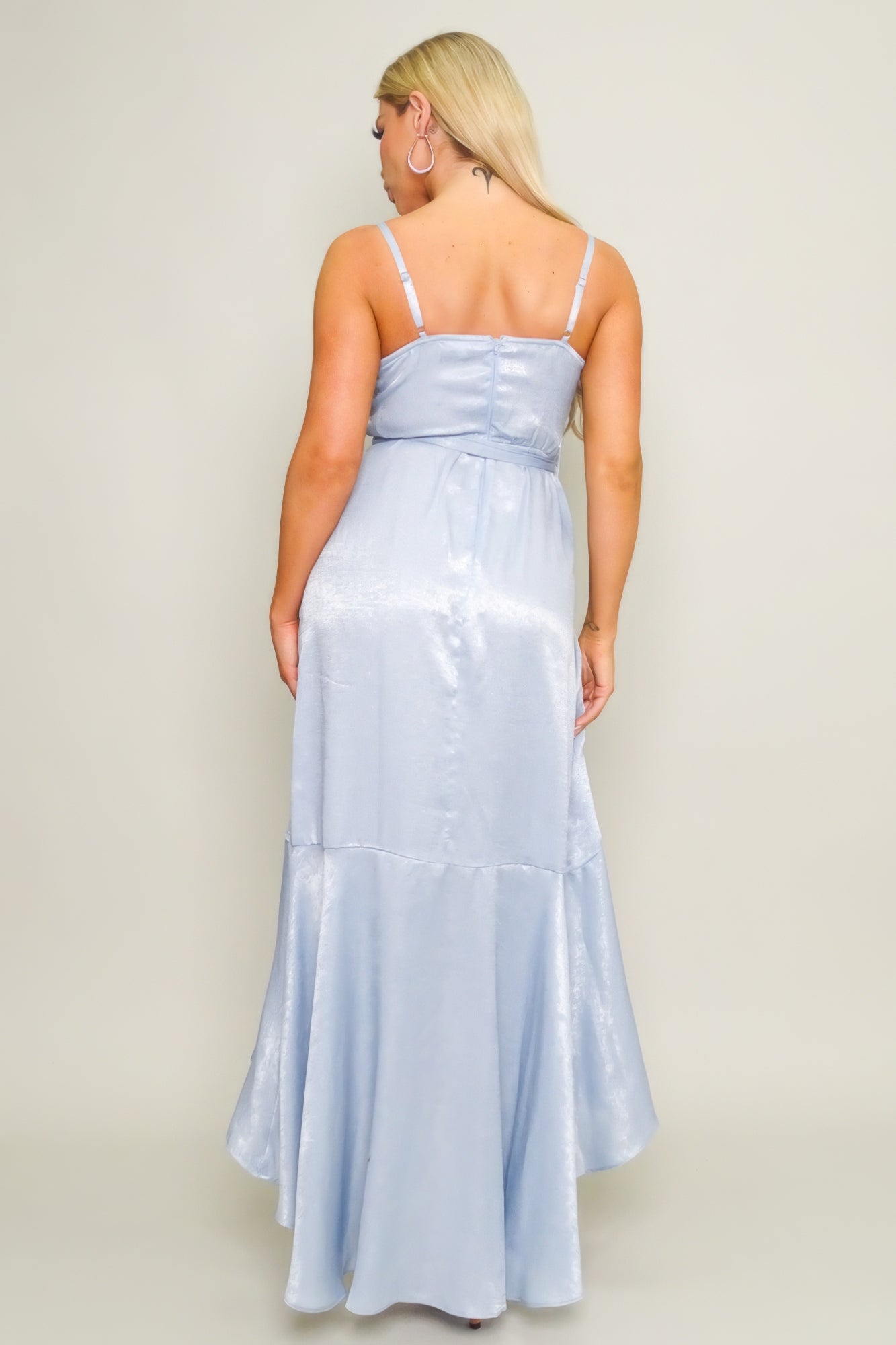 Introducing our Spaghetti Strap Deep V Ruffled Wrap Midi Dress in the serene hue of Sky Blue, a stunning ensemble designed to captivate with its feminine charm and graceful silhouette. With thoughtful details and a focus on comfort, this dress is sure to become a wardrobe favorite.