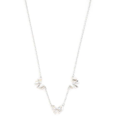 Elevate your style with our Triple Ribbon Bow Charm Metal Station Necklace in gold and rhodium finishes. Add a touch of elegance to your look and make a statement wherever you go!