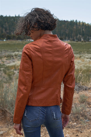 Rust Vegan Leather Long Sleeve Biker Jacket Sale
