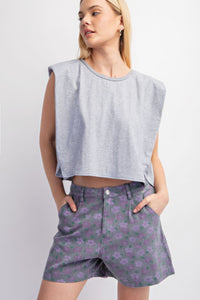 Sleeveless Crop Top With Shoulder Pads