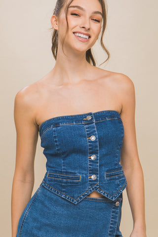 Denim Strapless Button-up Crop Top - S